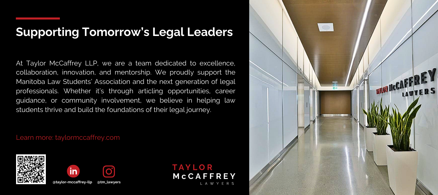 These contributions make it possible for us to deliver these events, build connections among students and with the broader legal community, and cultivate a welcoming environment at Robson Hall. From the excitement of the annual Law Banquet to the energy of MedLaw, our sponsors’ generosity ensures these experiences remain a memorable and defining part of law school life.
